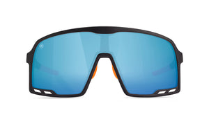 Just like a well-trimmed mullet ... our Hang Time Campeones sunglasses are business in the front & all party in the back. Black rubberized polycarbonate frames are accented with neon details like sturdy orange nose grips and pink ear grips that keep your sunnies secure at all times. The shining star here is the Knockterra™ aqua wrapping mirrored lens that boasts an oil and water-resistant experience for any version of fun you can think of.  Now grab your sunnies, it’s party time!