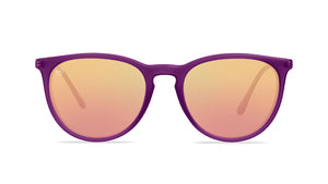 Velvet Royale Mary Janes channel the elegance of royalty with a modern twist. Inspired by the rich union of gold and deep velvety purple, these shades nod to regal heritage without the pomp and pageantry. Shiny gold arms frame lustrous, velvety purple fronts, creating a look that’s both intriguing and elevated. Finished with rose gold polarized lenses, they deliver a royal-level glow that stands out in any era. Don’t worry, we’ll have our curtsy ready.