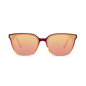Transparent plum frames over a metal core fade into poetic peach fronts that are sure to evoke heated whispers about your daring shades. Easily elevate your look with rose gold hardware that matches flashy rose gold polarized lenses, and enhance your confidence thanks to UV400 protection and impact resistance as standard measures.